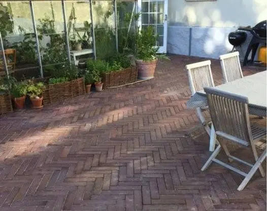 35-50mm sharp sand compacted. Loose lay Clay Pavers, sweep Kiln Dried Sand into joints and compact, ensure a rubber plate is used to stop damage to the pavers during compaction. Top up joints with Kiln Dried Sand after compaction.
