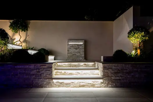 Gardens Of The Future used Vulcano Ceniza to create stunning feature walls and a stand-out water feature in this striking, modern North-East London garden. The large panel-size of the cladding allowed for the material to form impressive, seamless structures.