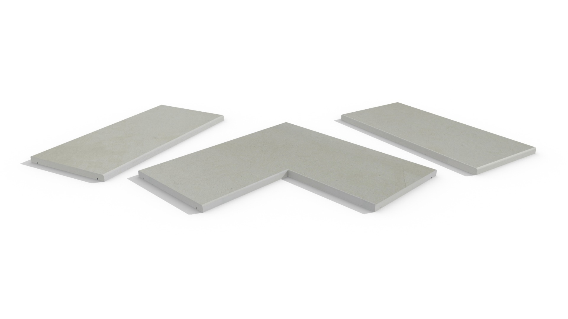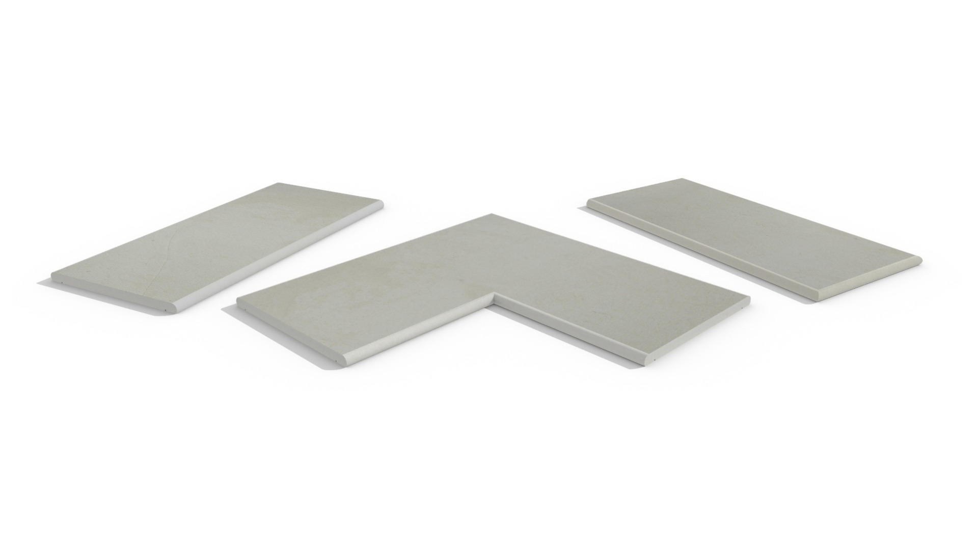 Comblanchien Porcelain Coping Stones offer the opportunity to add another layer of detail to your garden design, in strong horizontals that highlight the contours of walls and pool edges. With a fine-raked texture and in a very even bright white, this porcelain wall coping, with matching paving and step treads, creates a light, modern space with an airy feel. Four different edge profiles allow you to choose the detail that’s just right for your design. We recommend that all customers read our product & installation guides before buying.