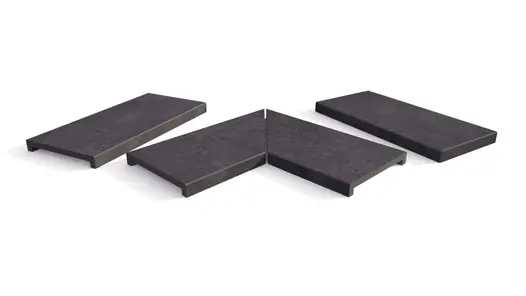 Florence Dark Porcelain Coping Stones, in combination with matching paving and step treads, help create a sophisticated unified design in a charcoal shade that gives strong contrast to green foliage and welcomes the addition of bright colour accents. Wall coping also serves more than a decorative purpose, protecting walls from excess dampness, and can provide useful extra seating or a platform for pots and planters. All our porcelain coping stones come in a range of four styles, with edge profiles suitable for modern, linear designs and more classic settings. We recommend that all customers read our product & installation guides before buying.