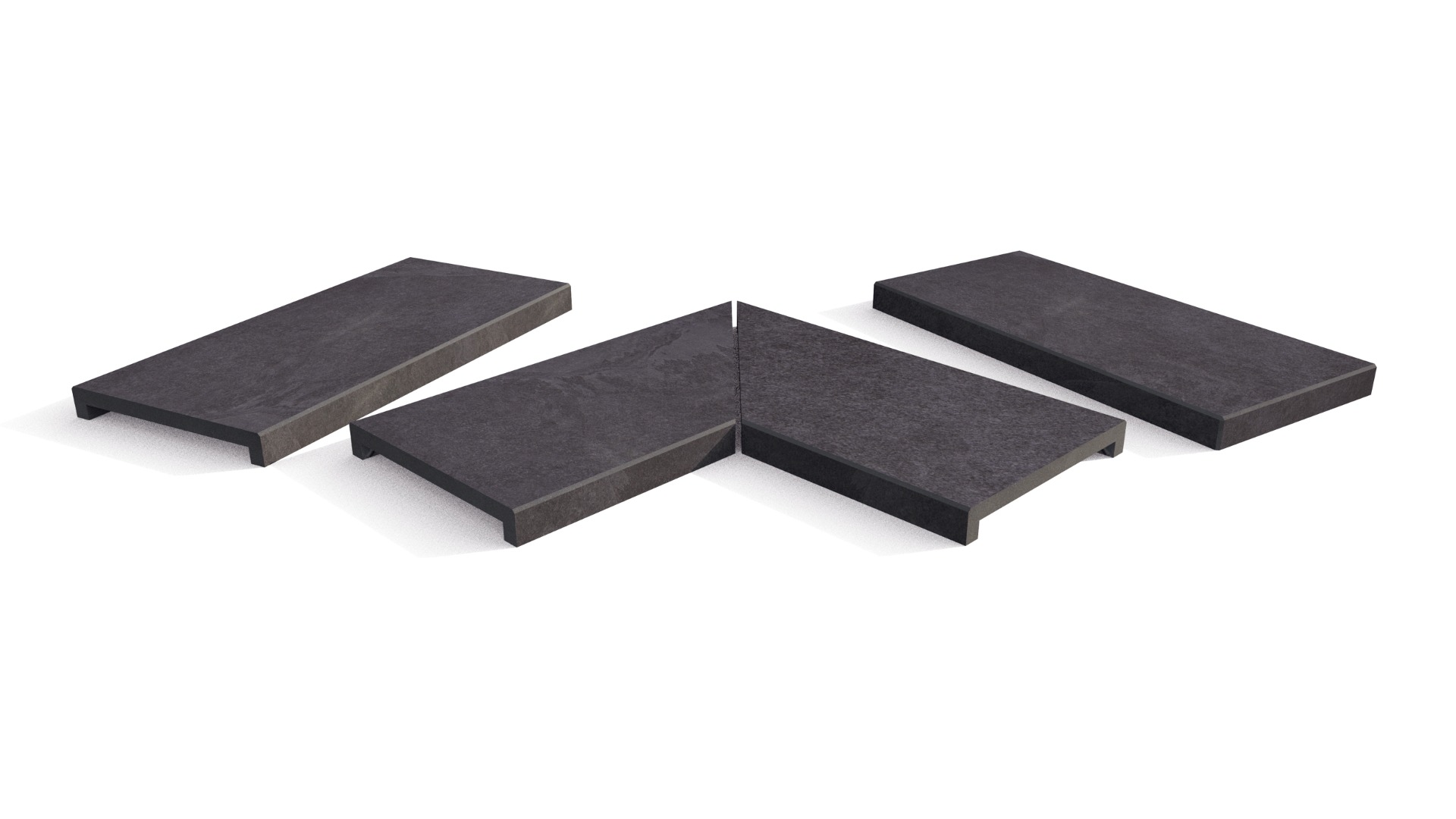 Delve into the rich colour, intricate surface texture, and refined edge profile of a typical piece of Florence Dark Porcelain Coping Stones and get a better idea if this is the right material for your project.