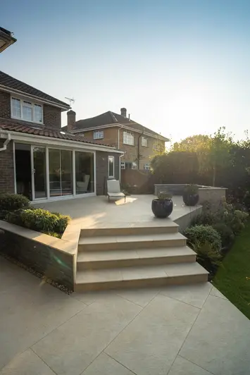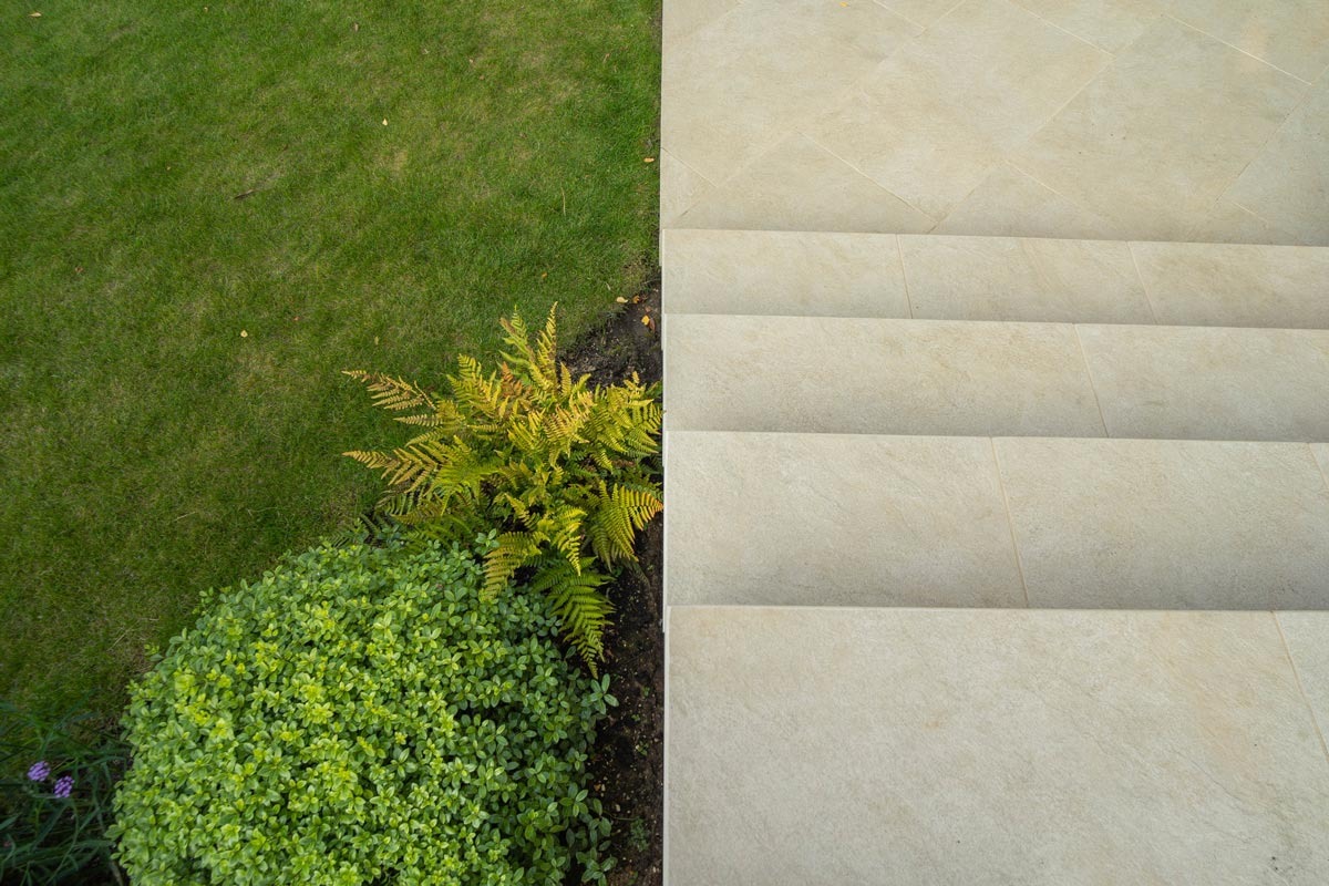 The rich tints and slightly burnished finish of Golden Stone Porcelain Garden Steps give a luxury feel to landscaping. The colour is a favourite with garden designers—no surprise, given its sleek look with a gentle play of light on the surface and the option of 1200mm format for a wide, generous tread that looks great in a modern garden and speeds the time required to lay and joint outdoor steps. Choose from our five different edge profile options—including 36mm bullnose, a London Stone exclusive—to add the perfect detail to your design. Also available in a choice of matching paving sizes and coping. We recommend that all customers read our product & installation guides before buying.