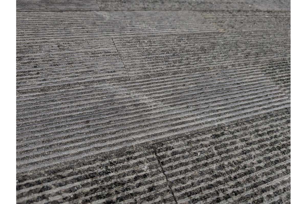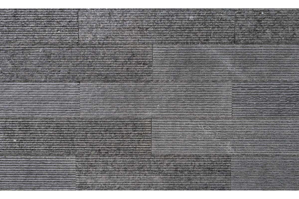 Ash Grey Granite Cladding showcases a distinctive hand-chiselled texture with fine, parallel lines that accentuate its plank-style format. The cool grey tones deliver a sleek, modern aesthetic, while the linear detailing adds depth and character, making it an ideal choice for contemporary architectural designs.