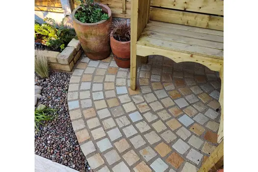 The gentle colours of Mint Sandstone Setts create a pastel mosaic which, complemented by the riven surface and hand-cut edges, add a rustic character to traditional designs. Part of our wide range of matching off-the-shelf paving, step treads, cladding and walling, these sandstone setts extend your design options in this versatile sandstone. We recommend that all customers read our product & installation guides and view our colour variation boards before buying.